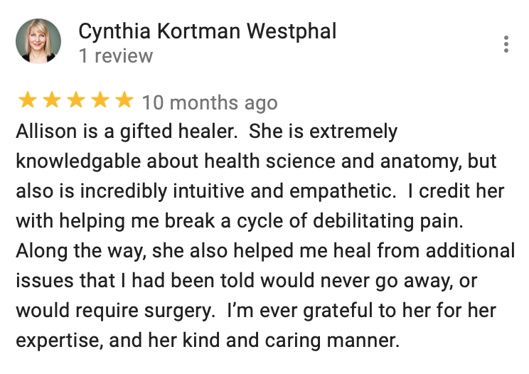 Many clients also experience improvements that they were not expecting at all for conditions they never tell us about including but not limited to: vertigo, tinnitus, dental occlusions (improved contact between teeth), and reduced painful sexual intercourse.